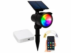 Lunartec Solarlampe Erdspiess:3er-Set RGB-CCT-LED-Spot Mit Bluetooth, 50 Lm, 1 W, IP44 Inkl. Gateway