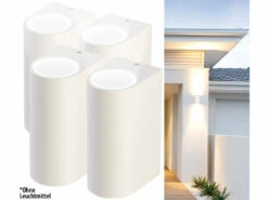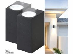 Lunartec Up And Down Lampe Außen:Runde LED-Wandleuchte, Up/Down Lampe, 2x GU10 Sockel, IP44, Schwarz