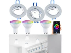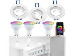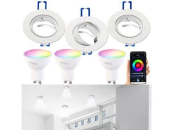 Luminea Einbaustrahler-Fassung:3er-Set Alu-Einbaustrahler-Rahmen, Einstellbarer Abstrahlwinkel, Weiß