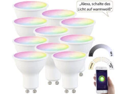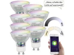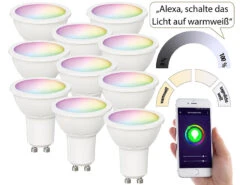 Luminea Home Control WLAN LED Lampe:10er-Set WLAN-LED-Spots, GU10, RGB-CCT 4,5Watt, 326 Lm, 45°, App