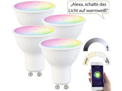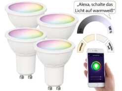 Luminea Home Control WLAN Lampe:WLAN-LED-Spot, GU10, RGB-CCT, 4,5 W (ersetzt 35 W), 326 Lm, 45°, App