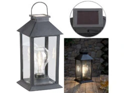 Lunartec Solar Laterne Outdoor:Solar-Laterne Mit LED-Glühbirne, Dämmerungs-Sensor & Akku, 5 Lm, IP44