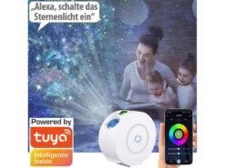 Lunartec Sternhimmelprojektor:Laser-3D-Sternenhimmel-Projektor, RGB-LEDs, Sprach-/Zeitsteuerung, App