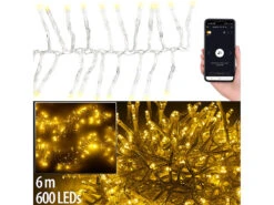 Lunartec Lichterkette 220 Volt:XL-WLAN-Lichterkette Mit 320 Warmweißen LEDs, 8 Modi, App, IP44, 32 M