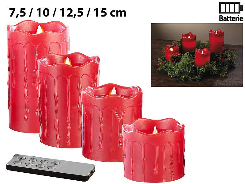 - 4 rote, abgestufte LED-Echtwachskerzen mit flackernder Candlelight-LED