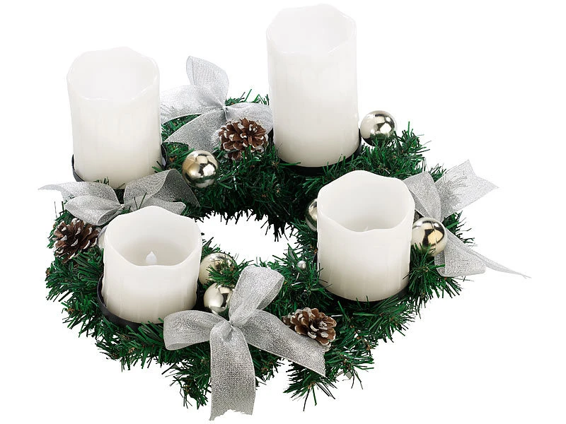 - Adventskranz inklusive 4 LED-Echtwachskerzen, Fernbedienung und deutscher Anleitung – Advent Deko Kranz – Außerdem relevant oder passend zu: Silber, Winter, Weihnacht, Weihnachten, Kabellose Weihnachtskerzen
