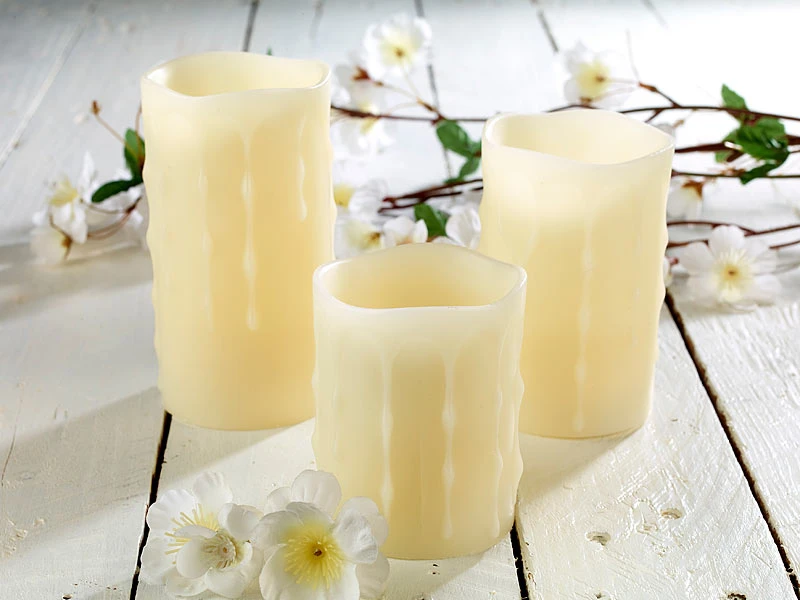 - 3 Echtwachs-Kerzen mit Funkfernbedienung und je 1 feuergelben Candlelight-LED