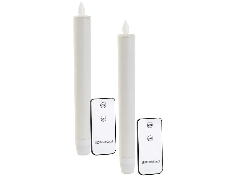 - 2er-Set LED-Stabkerze inklusive Fernbedienung mit Knopfzelle (CR2025) und deutscher Anleitung – LED Echtwachs Stabkerzen mit beweglicher Flamme – Außerdem relevant oder passend zu: Deko, Wachs, Docht, Advent, bewegliche, Beleuchtung, Pyramidenkerzen, Fernbedienungen