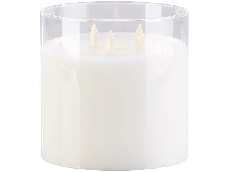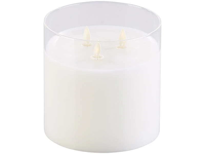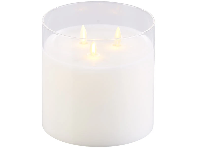 - 2 LED-Echtwachs-Kerzen im Glas jeweils inklusive deutscher Anleitung – LED 3 Docht Kerze – Außerdem relevant oder passend zu: Wachs, Teelicht, Partylicht, Teelichter, Fernbedienung