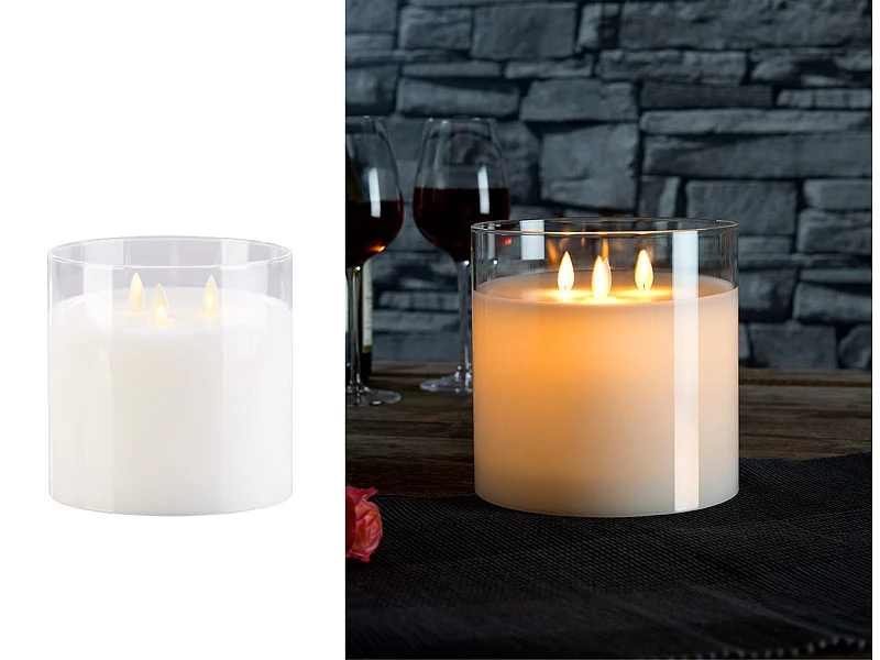 Täuschend echt, echt gemütlich: Bereiten Sie sich einen behaglichen Fernseh- und Leseabend oder dekorieren Sie stimmungsvoll Ihre Wohnung. Die Kerze imitiert das Flackern echten Kerzenscheins mit Candle-Light-LED und beweglicher Flamme. Platzieren Sie das stilvolle Windglas in Ihrem Fenster oder auf dem Boden.