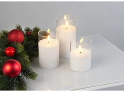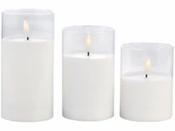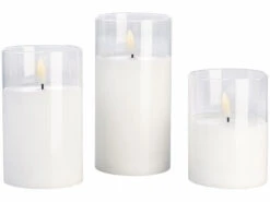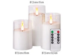 - LED-Echtwachskerzen in 3 unterschiedlichen Größen (je 7,5 cm Ø): 10 cm, 12,5 cm und 15 cm