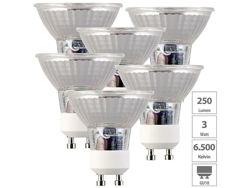 - 6er-Set LED-Spotlights mit Glasgehäuse