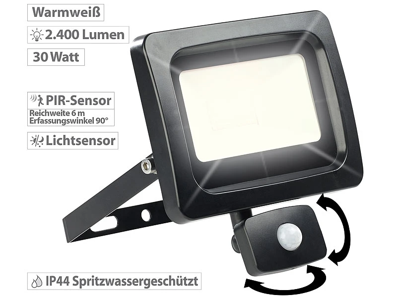- LED-Fluter inklusive deutscher Anleitung – LED-Strahler mit PIR-Sensor – Außerdem relevant oder passend zu: Halogen, Bewegung, Infrarot, Terrasse, Bewegungsmeldern