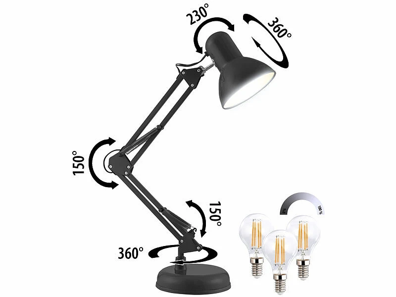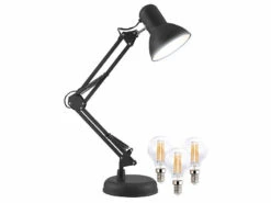 Ihre elegante Leuchte für Büro- und Schreibtisch: Diese Lampe in schwarzem Retro-Design macht an jedem Arbeitsplatz eine gute Figur. Sie leuchtet mit nur 4 Watt so hell wie eine 40-Watt-Glühbirne. Und das in angenehm warmweißem Licht.