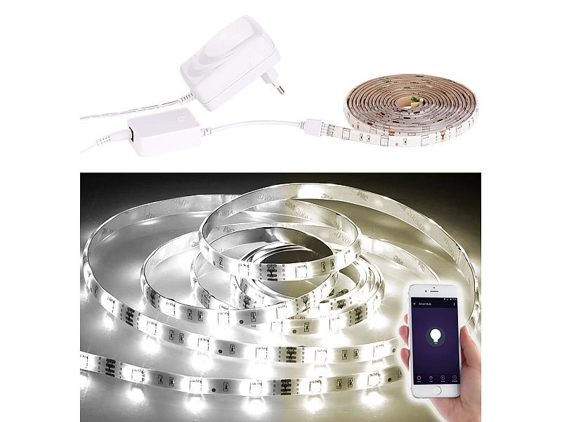 - Steuerung per kostenloser App für iOS und Android, erhältlich im App Store und bei Google Play: zum Ein-/Ausschalten und Dimmen des Lichts. Geeignet für iPhone 4S, 5, 5C, 5S, 6, 6S, SE, 7, 8, 8 Plus, X, Samsung Galaxy S6, S7, S8, HTC U11, HTC U Ultra, Sony XZ1, XA1 Plus u.v.m.