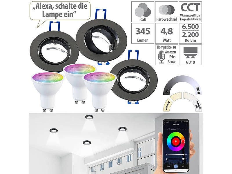 - 3er-Set Einbaustrahler-Rahmen inklusive deutscher Anleitung
