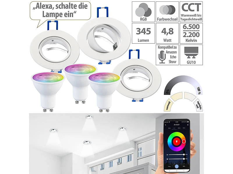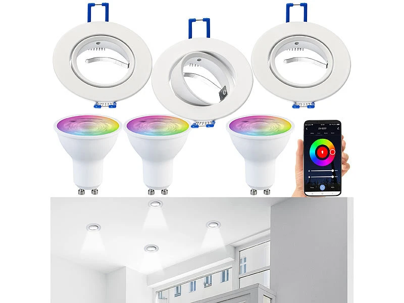 - 3er-Set LED-Lampen LAV-300.zigbee inklusive je Einbaustrahler-Rahmen und deutscher Anleitung