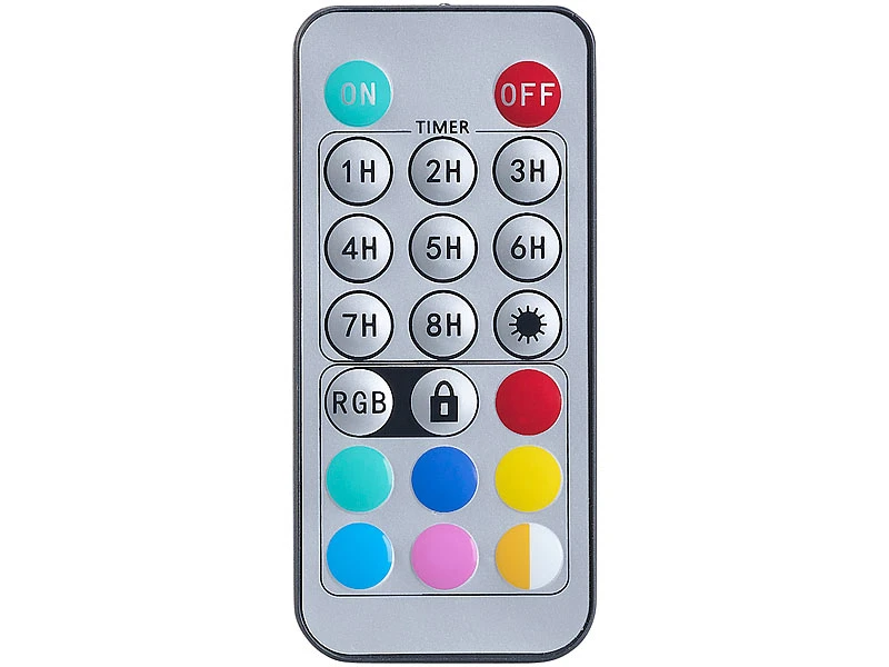 - Fernbedienung zum Ein- und Ausschalten, für Farbwahl und Timer-Funktion: benötigt Knopfzelle CR2025 (bitte dazu bestellen)