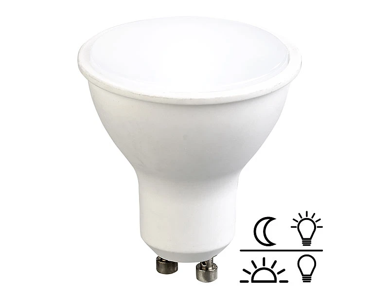 Unser Tipp: auch ideal als Einbruchsschutz, wenn Sie im Urlaub sind! Einfach den Spot in die GU10-Fassung drehen – und fertig. Schon geht bei Ihnen zu Hause jede Nacht das Licht von alleine an. So schrecken Sie ungebetene Besucher ab.