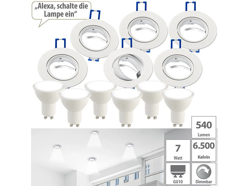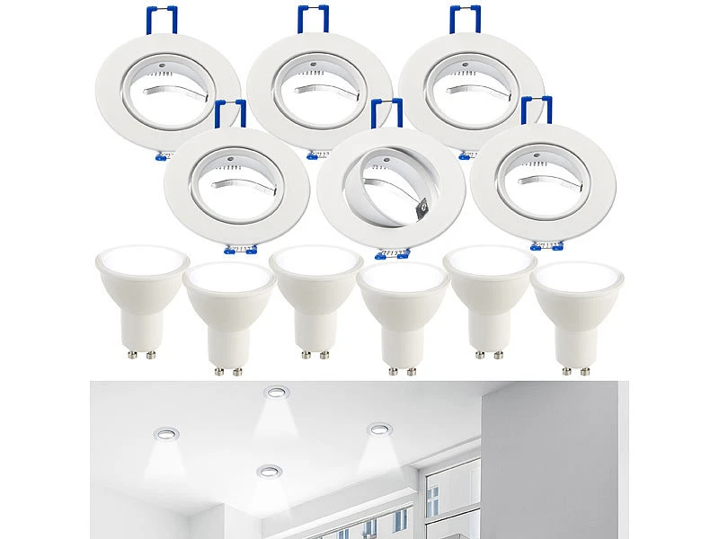 - 6er-Set LED-Lampen inklusive Einbaustrahler-Rahmen und deutscher Anleitung