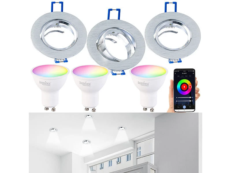 - 3 LED-Spots LAV-200.rgbw je inklusive Einbaustrahler-Rahmen und deutscher Anleitung