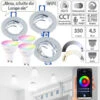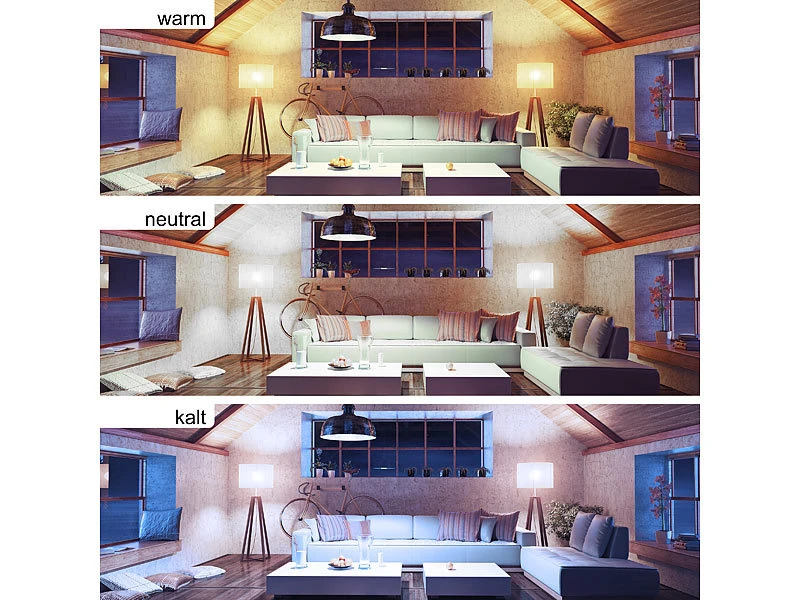 - Anpassbare Lichtfarbe: RGB für 16. Mio. Farbtöne und CCT mit 2200 – 6500 K (warmweiß bis tageslichtweiß)