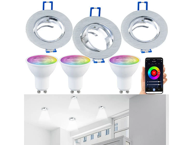 - 3 LED-Lampe LAV-300.zigbee je inklusive Einbaustrahler-Rahmen und deutscher Anleitung