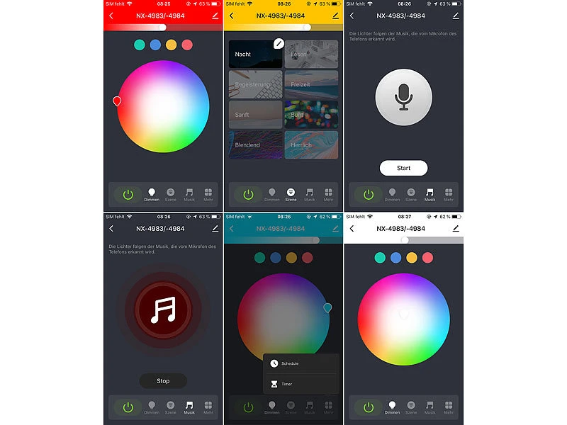 - Anpassbare Lichtfarbe: RGB (rot, grün, blau für 16 Mio. Farbtöne)
