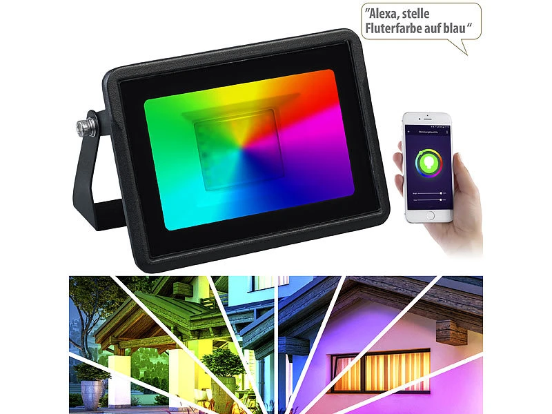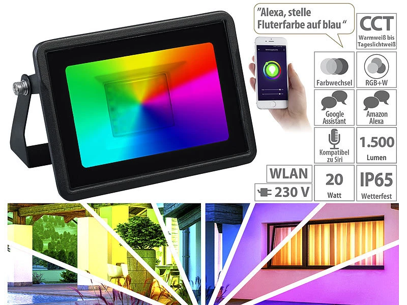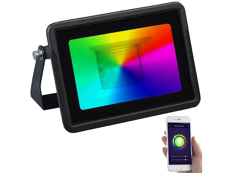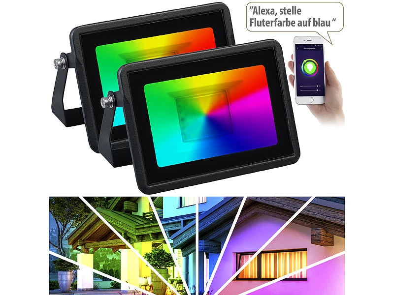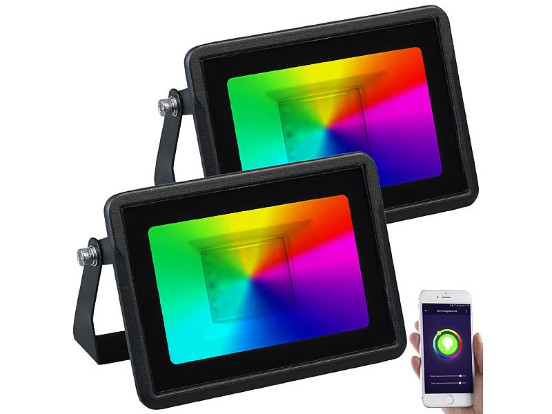 - 2er-Set WLAN-Strahler inklusive Anschlusskabel und deutscher Anleitung – CCT-LED-Fluter – AuĂźerdem relevant oder passend zu: RGBW, Tablet, iPhone, Halogen, PC, Spotlight, iPad Mini, Parkplatz, wasserdicht, Arbeitsleuchte, Fernbedienungen, Outdoor Smartphone