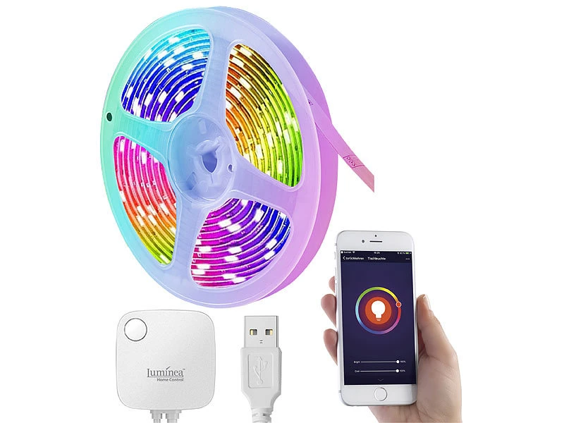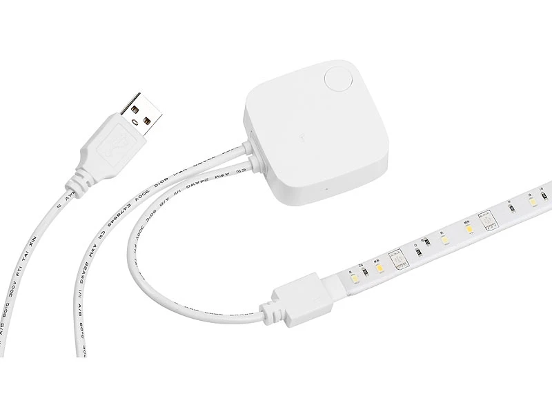 Kinderleichte Installation: Bringen Sie den LED-Streifen an Ihrer Wunschposition an, verbinden Sie den Controller mit ihm und einer USB-Stromquelle, laden Sie die Gratis-App herunter und verbinden Sie sie mit Ihrem LED-Streifen – fertig! Schon steuern Sie Ihr Licht.