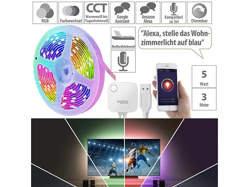 - Ideal als Hintergrundbeleuchtung für Ihren Fernseher und als indirekte Beleuchtung für Möbel, Betten, Fenster u.v.m.