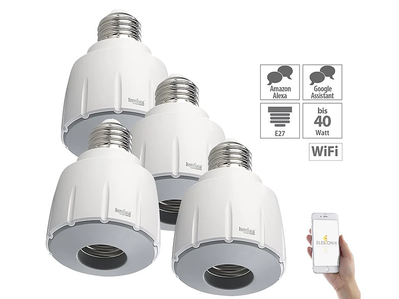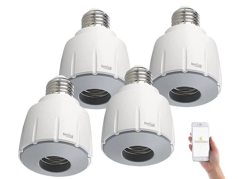 - 4er-Set Smart-WLAN-Adapter für Fassung E27 auf E27