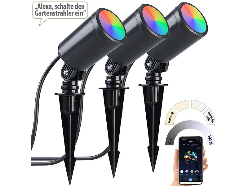 - 3 smarte Strahler mit ErdspieĂ und Netzkabel inklusive deutscher Anleitung – LED Gartenstrahler mit ErdspieĂ – AuĂerdem relevant oder passend zu: Blume