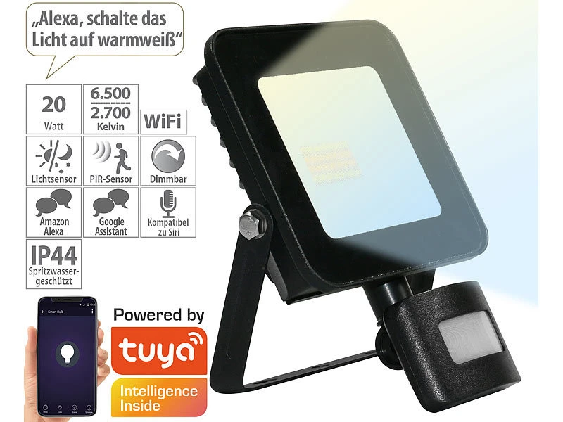 Lassen Sie Ihre Umgebung erstrahlen: Mit bis zu 1.600 Lumen sorgt Ihr neuer WLAN-Fluter selbst bei Nacht für beste Sicht in Hof und Garten. Bringen Sie ihn an der Wand, der Decke oder dem Boden an, drinnen wie draußen. Das robuste Gehäuse ist spritzwassergeschützt und flexibel montierbar.