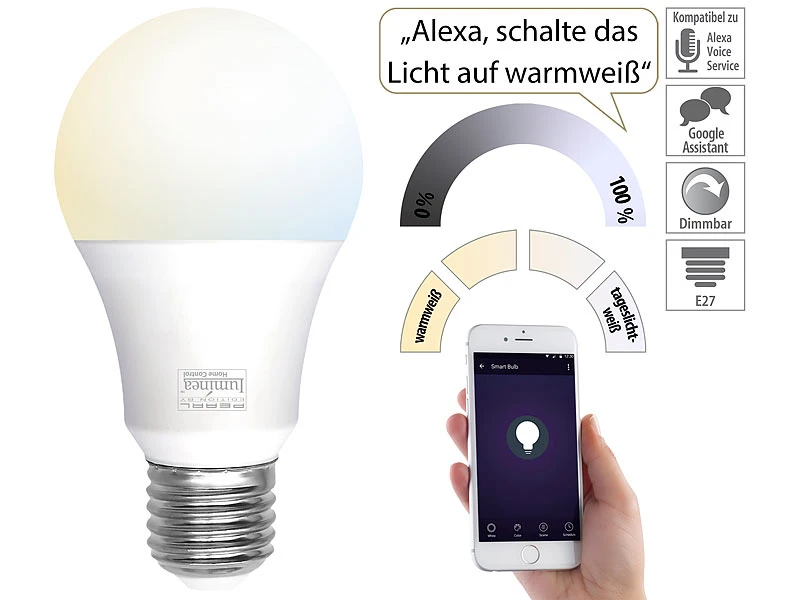 - Lampe LAV-110.w inklusive deutscher Anleitung – Alexa Glühbirne E27 – Außerdem relevant oder passend zu: iPad, Birne, Voice, Farbe, Lampen, Birnen, dimmbar, Service, Glühlampe, Smart Home, Deckenlampe, Funkschalter, Deckenleuchte, Lichtschalter, iPhone Smartphone, Leuchtmittel kaltweiß, Lampenfassung Schalter