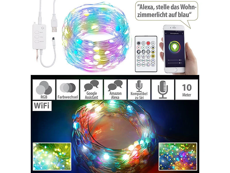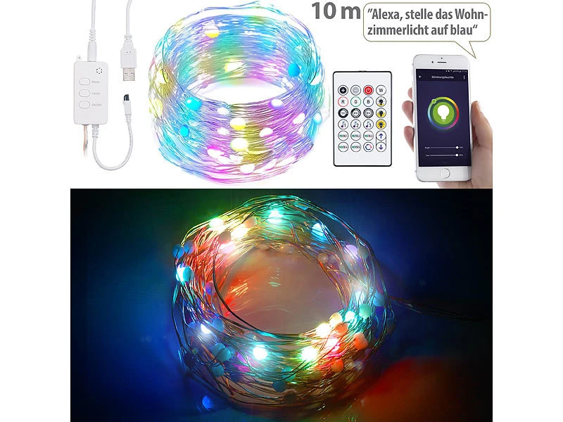 - 100 RGB-LEDs für bunten Lichtzauber in bis zu 16 Millionen Farben