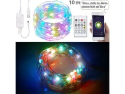 Bunter Lichtzauber leicht gemacht: Bringen Sie die Lichterkette dort an, wo Sie tollen Lichtschein haben möchten. Mit 100 LEDs auf 10 m Länge dekorieren Sie ganz einfach Fenster und Wände. Per Fernbedienung haben Sie jederzeit die Kontrolle über das Licht.
