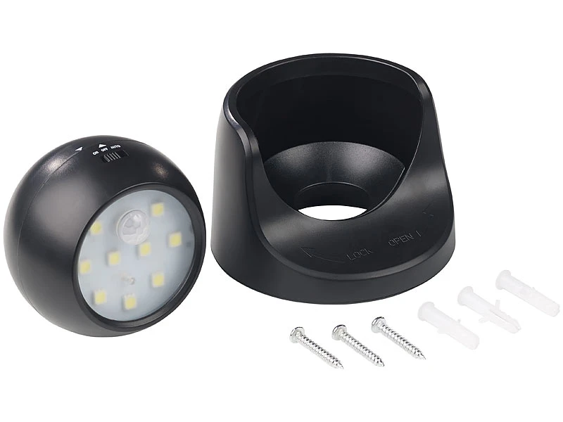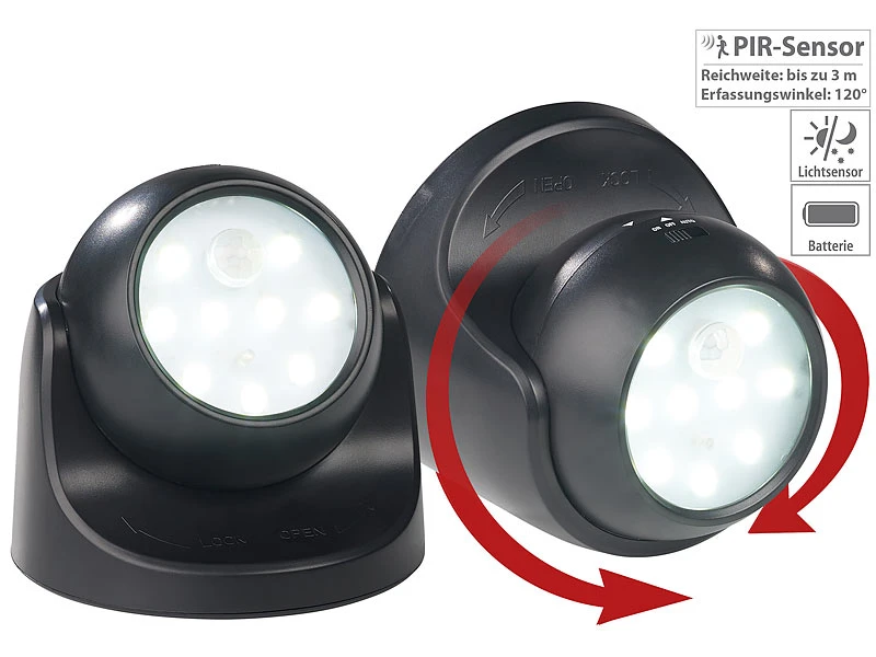 - PIR-Bewegungssensor: 30 Sekunden Leuchtdauer nach erkannter Bewegung, Erfassungswinkel: 120°, bis zu 3 m Reichweite
