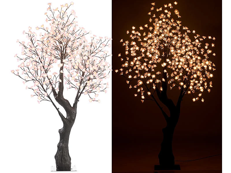 Setzen Sie funkelnde Lichtakzente im Wintergarten, Wohnzimmer, Schaufenster oder auf Ihrer Terrasse. Tagsüber erfreut Sie der lebensgroße Baum mit lieblichen japanischen Kirschblüten, abends strahlt er mit 576 warmweißen LEDs.