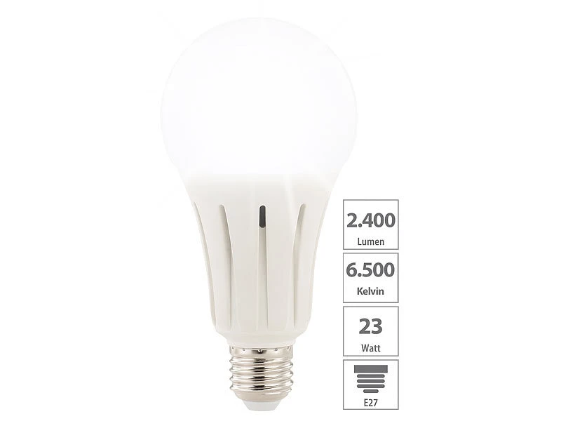 Sparen Sie mehr als 80 % Energie: Diese energieeffiziente LED-Lampe passt in normale E27-Fassungen und leuchtet mit nur 23 Watt Verbrauch so hell wie eine herkömmliche Glühbirne mit 175 Watt!