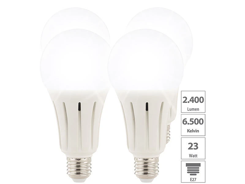 - 4 LED-Lampen mit E27-Sockel