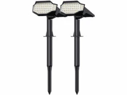 Kostengünstiges Licht ohne Kabelsalat: Dank Solarpanel laden sich die Gartenstrahler bei Tag von selbst auf. So sind Sie beim Aufstellen und Anbringen unabhängig von Steckdosen und Kabeln. Sobald es dunkel wird, spenden die je 66 LEDs warmweißes Licht mit bis zu starken 650 Lumen Helligkeit – ganz ohne Ihr Zutun!