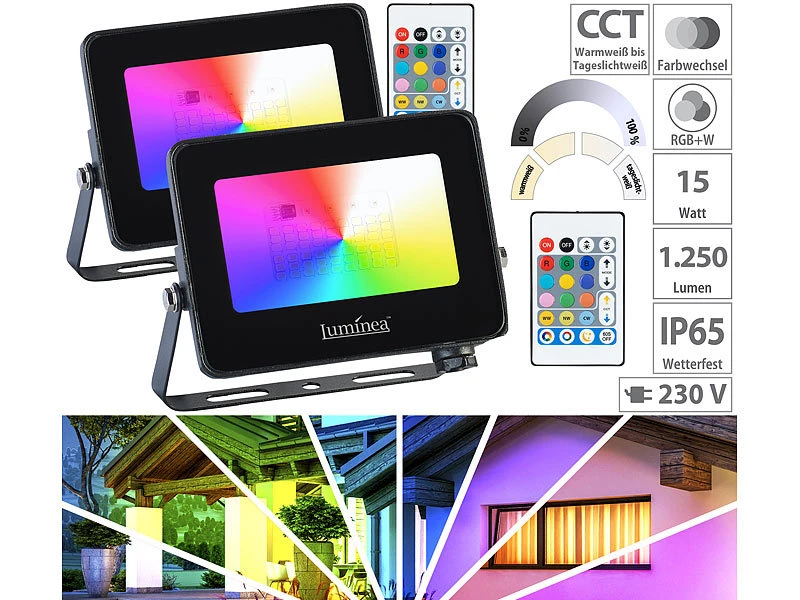- Wetterfester Fluter mit RGB-CCT-LEDs: Lichtzauber fĂĽr Haus, Hof und Garten