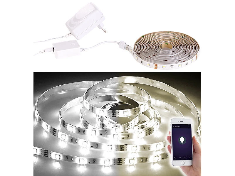 - Steuerung per kostenloser App für iOS und Android, erhältlich im App Store und bei Google Play: zum Ein-/Ausschalten und Dimmen des Lichts. Geeignet für iPhone 4S, 5, 5C, 5S, 6, 6S, SE, 7, 8, 8 Plus, X, Samsung Galaxy S6, S7, S8, HTC U11, HTC U Ultra, Sony XZ1, XA1 Plus u.v.m.