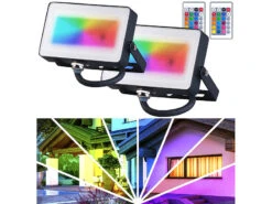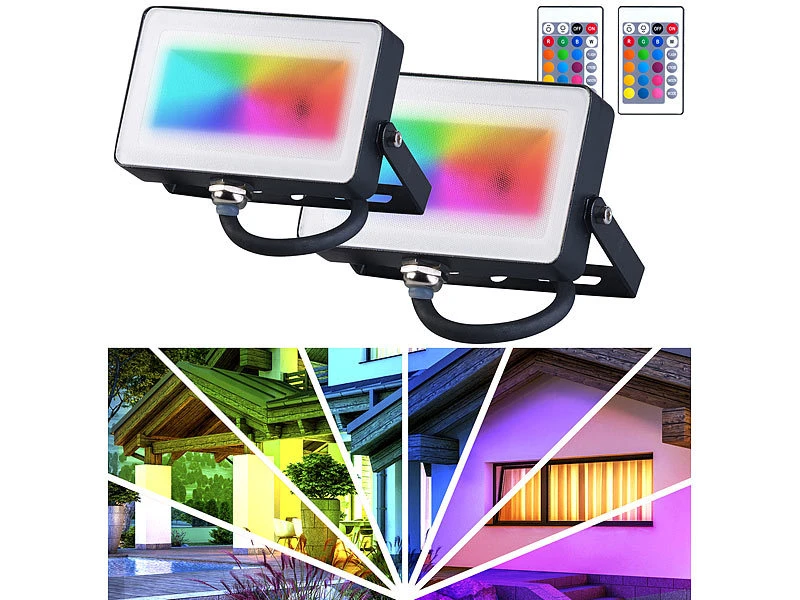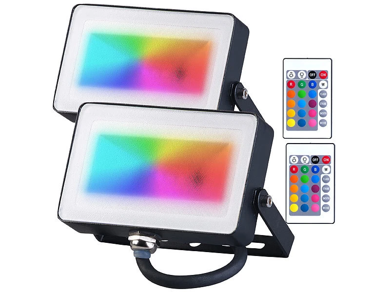 - 2er-Set Fluter inklusive 2 Fernbedienungen und deutscher Anleitung – RGB-LED-Fluter Outdoor – Außerdem relevant oder passend zu: Baum, Decke, Disco, Pflanzen, Terrasse, Farbwechsler, Pflanzenlicht, Pflanzenlampe