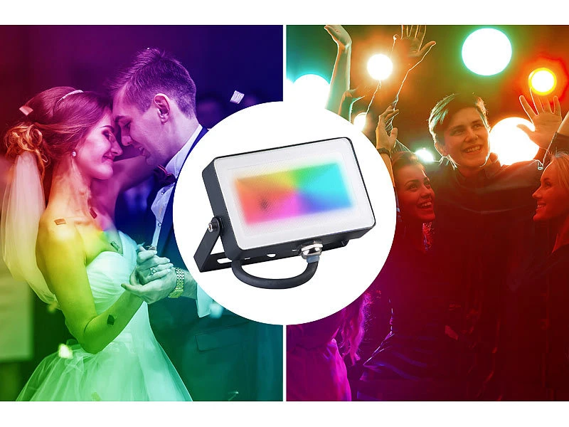 Für stimmungsvolle Momente und unvergessliche Partys: Der RGBW-Fluter strahlt in 16 Farben und 4 Leuchtmodi. Bringen Sie die Party in Schwung und wählen Sie zum Beispiel einen schnellen Farbwechsel. Oder lassen Sie es ruhiger angehen mit einem sanften, langsamen Farbübergang.