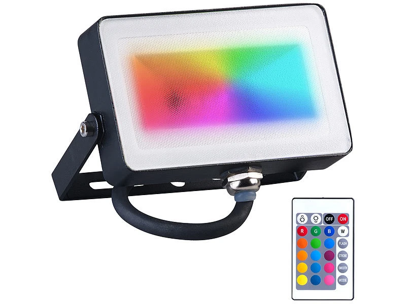Lassen Sie Haus, Hof und Garten erstrahlen: Bringen Sie Ihren neuen Fluter einfach an Wand, Decke oder am Boden an – drinnen wie draußen. Denn Ihr Farbwunder ist flexibel montierbar und wetterfest. Schon tauchen Sie Garten, Innenhof oder Partykeller in einen prachtvollen Lichterzauber!