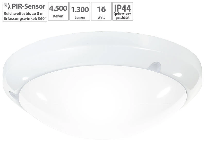 - Spritzwassergeschützt (IP44): für den Außenbereich geeignet