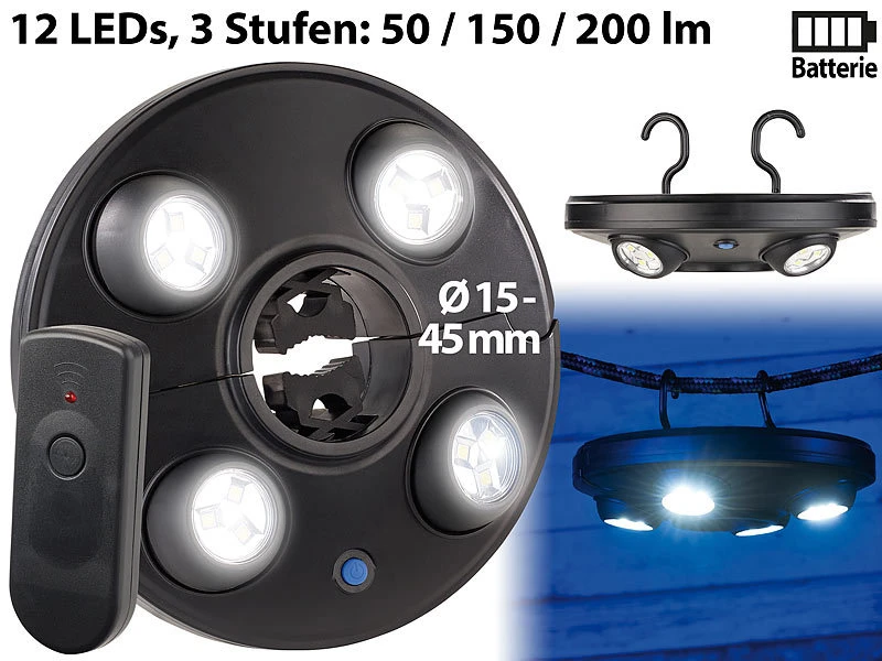 - Superhelle LED-Schirmleuchte für Stangen, Leinen u.v.m.