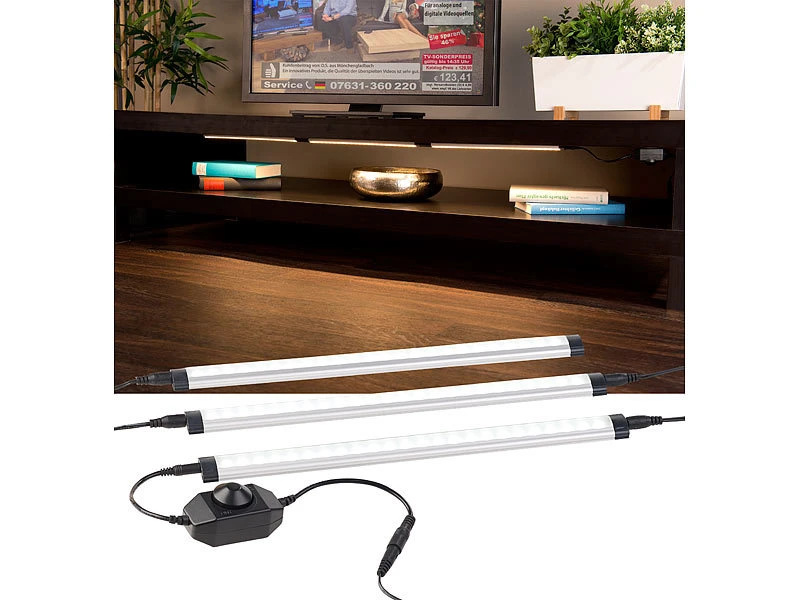 Gestalten Sie Ihre Beleuchtung ganz nach Wunsch: Verbinden Sie die drei Lichtleisten per Kabel. Schon verlegen Sie sie flexibel unter den Hängeschränken in Ihrer Küche oder in einer Vitrine. Per Verbinder stecken Sie sie einfach zu einer 90 cm langen Lichtleiste zusammen. Ideal für Ihr Fernseh-Board im Wohnzimmer u.v.m.